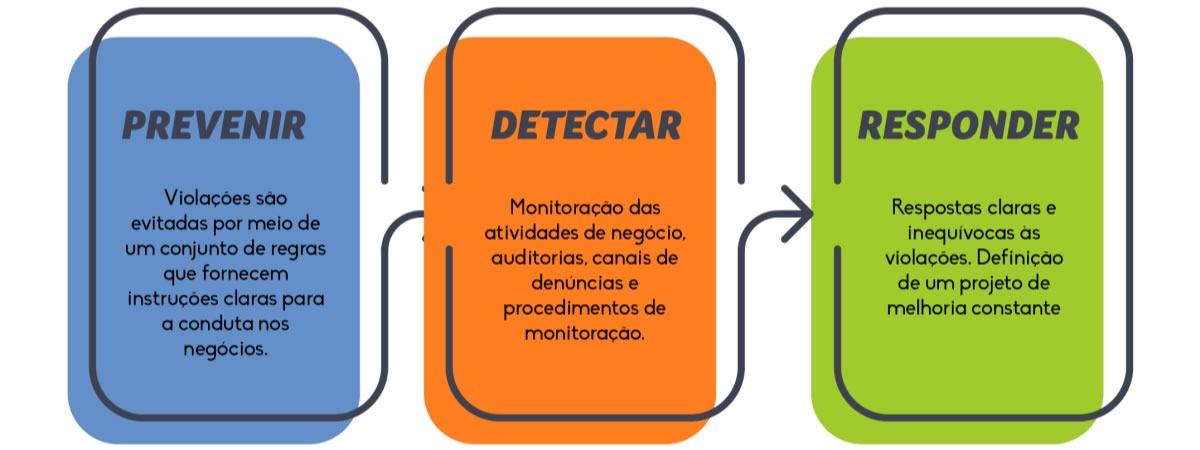 Prevenção: visa identificar, avaliar e mitigar o risco de ocorrência de atos ilícitos e indesejados.